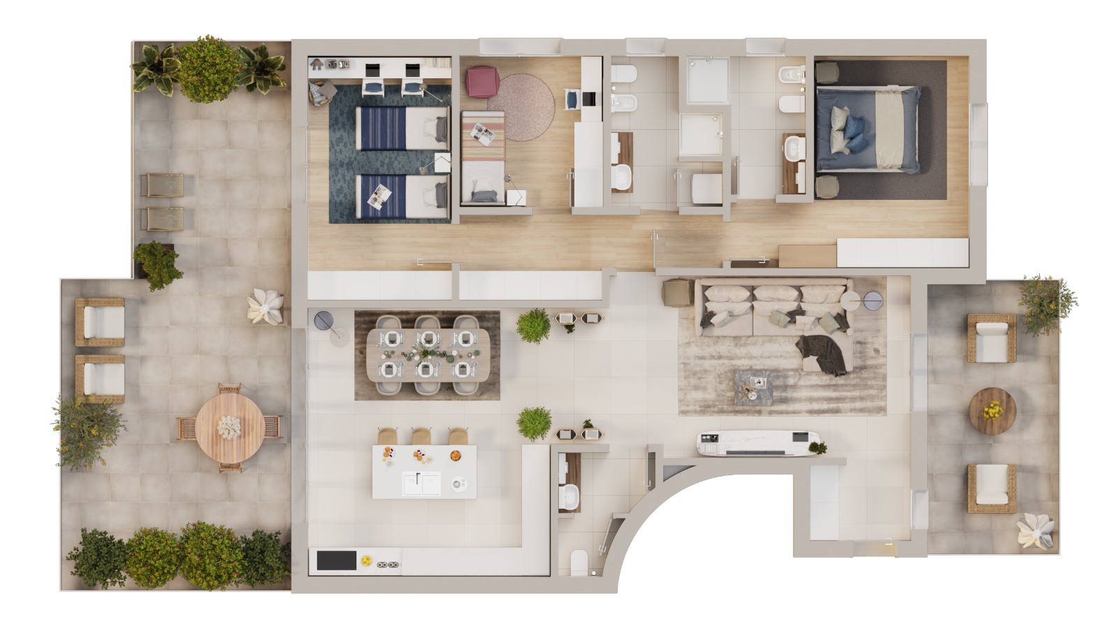 Le finiture, curate in ogni dettaglio, sono state selezionate con cura da Studio Art per creare un ambiente che unisca estetica, funzionalità e qualità. Gli spazi sono stati progettati per valorizzare la luce naturale, evitando zone d’ombra e donando equilibrio e armonia a ogni ambiente.