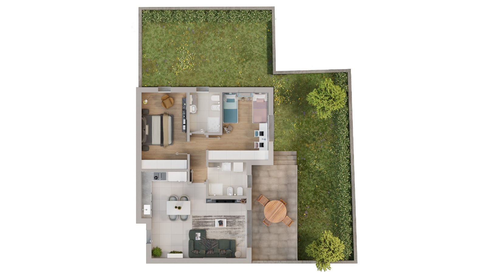 All’interno del quartiere residenziale progettato da Studio Art, proponiamo in vendita un esclusivo appartamento bicamere con giardino di proprietà, ideale per chi cerca comfort e qualità in un contesto moderno.