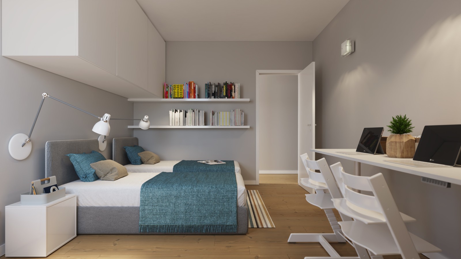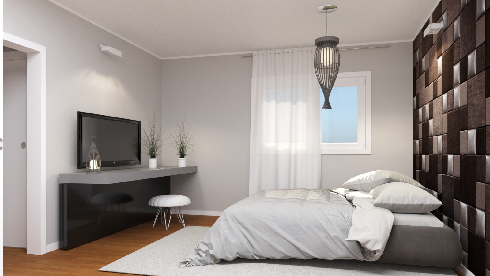 La camera matrimoniale luminosa e ampia è rifinita in ogni minimo dettaglio. La camera doppia può essere attrezzata per ospitare due letti. Il comodo disimpegno nella zona notte favorisce comfort e praticità.