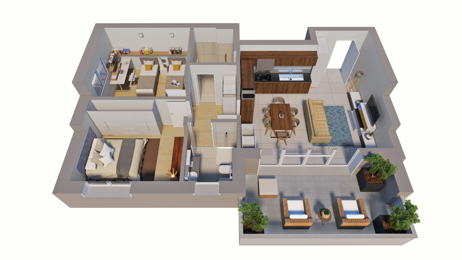 Locali: 2 camere + soggiorno/cucina
