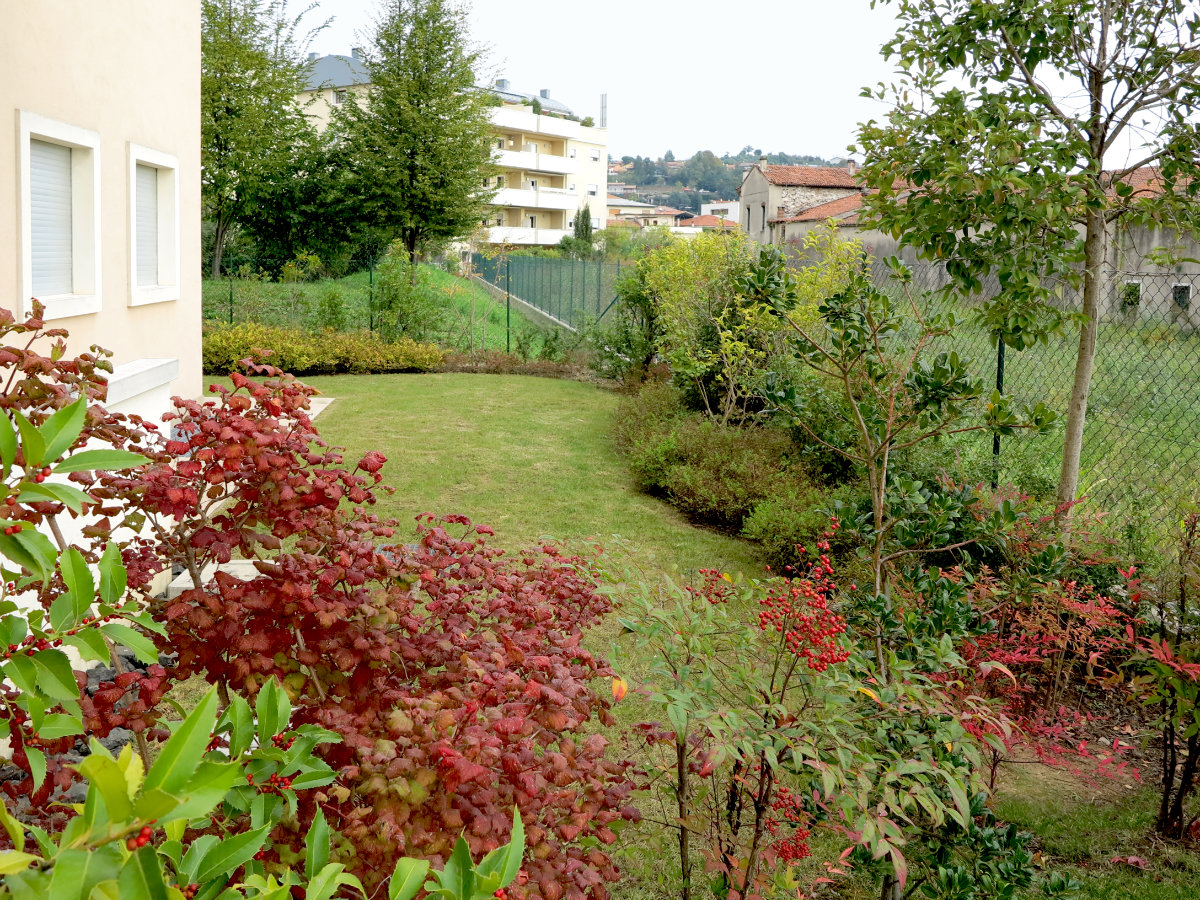- superficie comune in quota parte comprendente anche giardino piantumato con sistema di irrigazione automatico